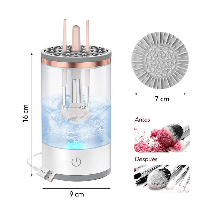 Con el Limpiador de Brochas Eléctrico, lava y seca tus brochas en solo segundos, sin esfuerzo y con resultados profesionales.